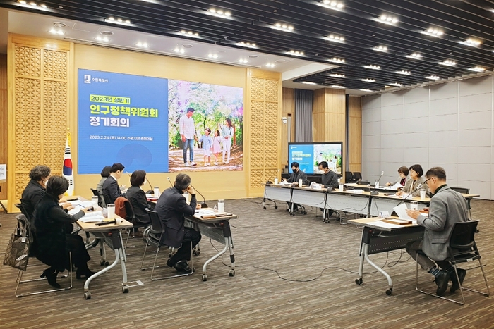 수원시와 수원시 인구정책위원회는 24일 시청 중회의실에서 2023년 상반기 정기회의를 열고, 수원시 2023년 인구정책 시행계획을 심의·의결했다.