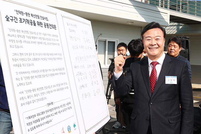 이에 인덕원~동탄 복선전철 사업의 조속한 추진을 위해 경기도와 5개 시가 한자리에 모여 390만 명의 경기남부 주요거점지역 시민의 염원을 담은 ‘인덕원~동탄 복선전철 건설사업 全구간 조속착공을 위한 공동건의문’에 서명했다.