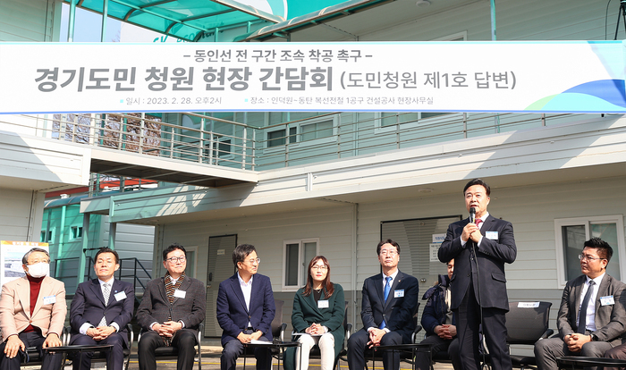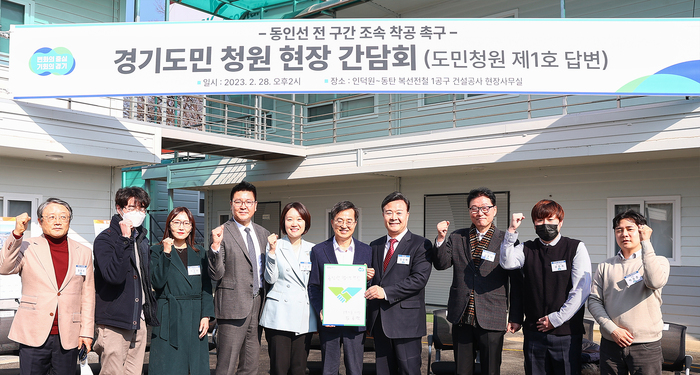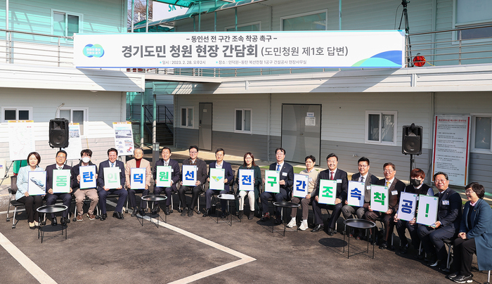 의왕시(시장 김성제)는 28일 인덕원~동탄 1공구(인덕원역) 현장사무실에서 김동연 경기도지사와 5개 시(수원시, 용인시, 화성시, 안양시, 의왕시) 시장, 지역 국회의원이 모인 가운데 인덕원~동탄 복선전철 조기착공을 위한 공동건의문을 채택했다고 밝혔다.