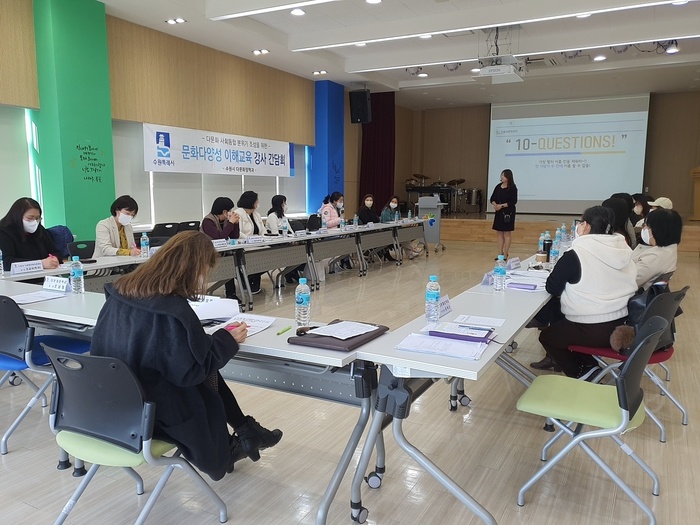수원시는 28일 수원시글로벌청소년드림센터 강당에서 대면·비대면 병행방식으로 ‘2023년 문화다양성 이해교육 강사 간담회(보수교육)’를 열었다.