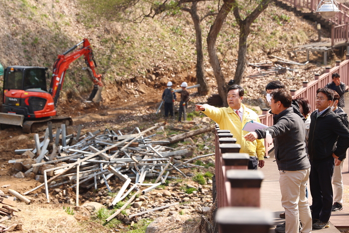 시는 신속한 수해 복구를 위해 행안부 등 중앙부처와 협의를 진행하였으며, 지난해 11월 하천시설물 복구비용 38억 5천만원을 확정하고, 수해피해 복구를 위한 설계를 진행하여 지난 3월 말 설계용역을 끝마쳤다.