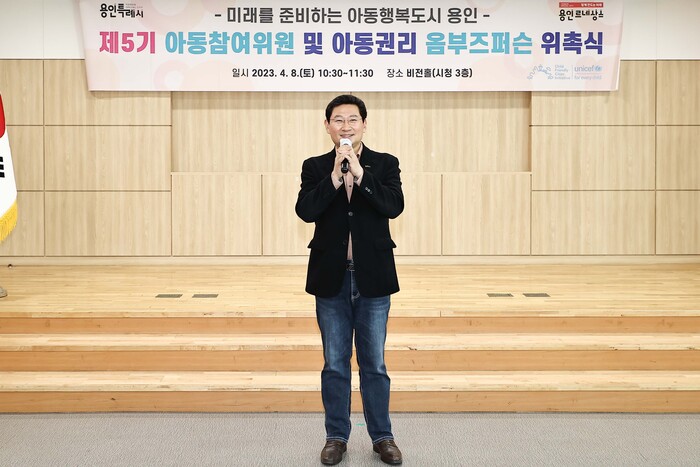 이상일 용인특례시장이 8일 ‘제5기 용인시 아동참여위원회 위원’ 및 ‘아동권리 옴부즈퍼슨’ 위촉식에 참석해 아동참여위원들에게 소개한 말이다.