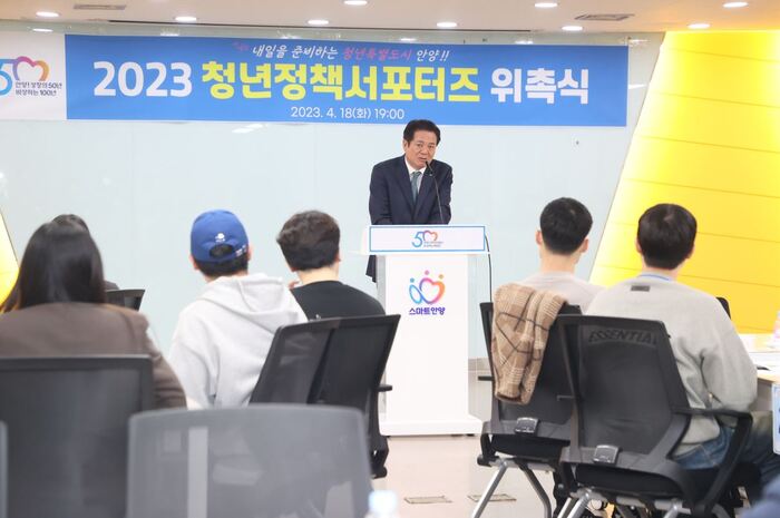 안양시는 지난 18일 오후 7시 시청 3층 상황실에서 ‘2023 청년정책 서포터즈’ 위촉식을 개최하고 본격적인 활동을 시작했다고 19일 밝혔다.
