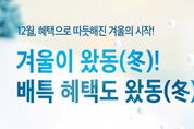케이부동산뉴스 김교민 기자 | 경기도와 경기도주식회사가 공동 운영하는 경기도 공공배달앱 배달특급이 겨울을 맞아 12월 한 달간 ‘겨울이왔동(冬)’ 소비자 할인 프로모션을 진행한다. ‘겨울이왔동(冬)’ 소비자 할인 이벤트는 ‘통 큰 세일’ 프로모션 종료 등으로 아쉬움이 남는 소비자들의 편익을 증대하기 위해 마련했다. 배달 특급 전체 회원, 전체 서비스 지역을 대상으로 1만2천원 주문에 사용가능한 3천원 할인 쿠폰을 예산 소진시까지 1일 1인 1회 지급한다. 한편 배달특급의 모든 이벤트는 해당 상단 배너 기능을 통해 확인 가능하며, 지역에 따라 할인 조건과 금액이 달라질 수 있어 사전 확인이 필요하다.