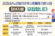 케이부동산뉴스 김교민 기자 | 광명시가 어르신의 건강한 노후와 사회참여 확대를 위해 노인 일자리 참여 기회를 넓힌다. 시는 오는 12월 1일부터 12일까지 ‘2026년 노인일자리 및 사회활동 지원사업’ 참여자 3천384명을 모집한다. 내년도 사업 예산은 전년보다 1억 7천400만 원이 늘어난 162억 원이 편성됐다. 이번 사업은 ▲노인 공익 활동 ▲노인 역량 활용 ▲공동체 사업단 ▲취업 지원형 등 네 가지 유형으로 운영한다. 노인공익활동은 65세 이상 기초·직역연금 대상 어르신이 지역 환경정비, 공공시설 지원 등 공익 활동에 참여하는 사업이다. 노인역량활용은 돌봄·안전 등 도움이 필요한 가정이나 시설에 서비스를 제공하는 역할을 맡으며, 공동체 사업단은 60세 이상 어르신이 소규모 매장 운영 또는 전문사업단 활동으로 경제활동을 이어갈 수 있도록 지원한다. 취업지원형은 구인 기업과 어르신을 직접 연계해 민간 분야에서 일자리를 찾을 수 있도록 돕는다. 참여를 원하는 어르신은 주소지 동 행정복지센터 또는 7개 수행기관(광명시니어클럽, 대한노인회 광명시지회, 소하노인종합