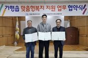 케이부동산뉴스 김교민 기자 | 가평군 가평읍 행정복지센터는 최근 가평읍지역사회보장협의체(지사협), 유일닭강정과 ‘맞춤형복지 지원 업무협약’을 체결했다. 이번 협약으로 유일닭강정은 매월 가평읍 맞춤형복지팀에서 추천한 저소득계층 10가정에 닭강정을 지원해 주기로 했다. 장석조 가평읍장은 “복지사각지대 발굴뿐 아니라 민간 자원 연계가 복지 수준을 높이는 데 큰 역할을 한다”며 “이번 협약이 공공자원만으로는 충족하기 어려웠던 복지수요를 보완하는 데 큰 도움이 될 것”이라고 말했다. 유병훈 유일닭강정 대표는 “우리 지역 주민들과 마음을 나누고 싶어 맞춤형복지 지원 협약에 참여했다”며 “앞으로도 어려운 이웃을 위한 나눔과 봉사를 꾸준히 실천하겠다”고 밝혔다.