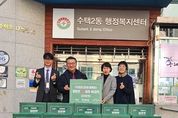케이부동산뉴스 김교민 기자 | 구리시 수택2동은 지난 12월 18일 지역사회 이웃사랑 실천의 하나로 구리중앙교회와 국제구호단체 ‘기아대책’이 함께 마련한 희망 상자 46박스를 전달받았다. 희망 상자에는 5만 원 상당의 식료품과 생필품 등이 고르게 담겨있으며, 관내 저소득층과 청장년 1인 가구 등 다양한 이유로 생활에 어려움을 겪고 있는 취약계층 가구에 전달될 예정이다. 장영훈 구리중앙교회 목사는 “겨울철 경제적으로 어려움을 겪는 이웃들에게 작은 온기라도 전하고자 기아 대책과 함께 이번 나눔에 참여하게 됐다.”라며, “앞으로도 지역사회를 위해 지속적인 나눔 활동을 이어가겠다.”라고 마음을 전했다. 박정희 수택2동장은 “본격적인 한파로 취약계층의 어려움이 더욱 커지는 시기에 실질적인 도움을 전해 주셔서 큰 위로와 힘이 된다.”라며, “앞으로도 지역 내 누구도 소외되지 않도록 다양한 복지자원 발굴과 민관 협력을 통해 촘촘한 복지 안전망을 구축해 나가겠다.”라고 감사의 마음을 전했다. 한편, 기아대책의 ‘희망 상자 캠페인’은 NGO, 교회, 지자체가 협력해 지역사회 취약계층 및 위기가구에 생필품 꾸러미를