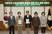 케이부동산뉴스 김교민 기자 | 의정부시의회 ‘의정부시 노인사회참여 연구회’가 18일 연구용역 최종 결과를 집행부에 전달했다. 의정부시 노인사회참여 연구회는 조세일 대표의원과 김연균 의원, 정미영 의원으로 구성된 의원 연구단체로, 노인의 사회참여 현황과 효과를 분석하고 지역 맞춤형 정책 방안을 제시함으로써 노인의 삶의 질 향상과 세대 통합, 지역 공동체 회복을 위해 지난 5월부터 연구 활동을 돌입해 11월 연구 용역을 마쳤다. 연구회는 노인 관련 총괄 부서인 노인복지과에 노인의 사회참여 유형을 분류하고 방안을 제시하는 등에 대한 연구 결과를 토대로 작성된 연구용역 결과 보고서를 전달했다. 조세일 대표의원은 “이번 연구 결과를 바탕으로 담당부서와 협력하고 소통하여 노인사회참여 방안을 실체화하고 추진해 나갈 예정이다”라며, “고령사회 속에서 다양한 세대가 함께 공존할 수 있는 기반이 조성되길 바란다”라고 밝혔다.