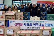 케이부동산뉴스 김교민 기자 | 영통구 광교1동은 지난 2월 11일, 설 명절을 앞두고 관내 단체와 기관의 따뜻한 나눔이 이어지는 가운데 ‘설 명절 이웃나눔 전달식’을 개최했다고 밝혔다. 광교1동에 따르면, 이번 전달식에는 동남용역이 후원한 햄 40세트와 시립광교동어린이집에서 정성껏 준비한 생필품 꾸러미 40박스가 전달됐다. 또한 광교1동 지역사회보장협의체에서 마련한 후원금과 광교1동 공동모금회를 통해 준비된 떡국떡, 전, 나물, 과일 등 명절 음식도 함께 전달돼 뜻깊은 의미를 더했다. 특히 이번 나눔은 기업과 보육기관, 지역 복지단체가 한마음으로 참여해 설 명절을 앞두고 소외되기 쉬운 이웃들에게 따뜻한 정을 전하며 지역사회에 훈훈한 분위기를 조성했다. 광교1동은 이날 전달된 성금과 물품을 저소득 가정과 취약계층, 홀몸 어르신 등 도움이 필요한 이웃들에게 전달해 따뜻하고 풍성한 설 명절을 보낼 수 있도록 지원할 예정이다. 송숙영 광교1동장은 “설 명절을 맞아 어려운 이웃을 위해 소중한 정성을 모아주신 모든 분들께 깊은 감사의 말씀을 드린다”며, “전달받은 성금과 물품은 꼭 필요한 이웃들에게 정성껏 전