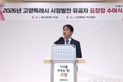 케이부동산뉴스 김교민 기자 | 고양특례시는 지난 9일 고양시 백석별관에서 ‘2026년 고양특례시 시정발전 유공자 표창장 수여식’을 개최하고, 지역 농업 발전에 기여한 후계농업경영인에 표창을 수여했다. 이번 표창은 고양시 농업 발전과 농업인 권익 향상에 기여한 유공자를 발굴·격려하기 위해 추진된 것으로, (사)한국후계농업경영인 고양특례시연합회 소속 회원 5명이 고양특례시장 표창을 받았다. 수상자는 ▲원동휘 회장 ▲한기웅 수석부회장 ▲장성석 수석단장 ▲이종철 사업부회장 ▲이성철 청년지원사업단장으로, 지역 농업 활성화와 후계농업인 육성, 농업 현안 대응 등에 기여한 공로를 인정받았다. 이날 수여식에는 농업인과 관계자가 참석해 수상자들을 축하하며, 지역 농업 발전을 위한 그간의 노고를 함께 격려했다. 이동환 고양시장은 “후계농업경영인은 지역 농업의 미래를 이끌어갈 핵심 주체”라며 “앞으로도 농업인의 사기 진작과 지속가능한 농업 발전을 위해 다양한 지원과 정책을 추진해 나가겠다”고 밝혔다.