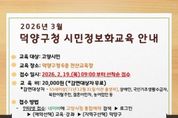 케이부동산뉴스 김교민 기자 | 고양특례시 덕양구는 급변하는 디지털 환경에 대응하고 시민들의 정보 활용 능력을 높이기 위해 ‘제2차 시민정보화교육’을 운영한다고 13일 밝혔다. 이번 교육은 △실무 활용도가 높은 엑셀 과정 △디지털 소외 계층을 위한 스마트폰 기초 및 AI 맛보기 과정으로 구성됐다. 특히 단순한 기기 조작을 넘어 최근 화두인 인공지능(AI) 도구를 직접 체험해 볼 수 있는 커리큘럼이 포함되어 눈길을 끈다. 교육은 오는 3월 3일부터 26일까지 덕양구청 전산교육장에서 진행되며, 수강 신청은 이달 19일 오전 9시부터 덕양구청 누리집을 통해 가능하다. 구 관계자는 “이번 교육이 시민들의 디지털 격차를 해소하고 실전 업무 능력을 향상하는 계기가 되길 바란다”며 “앞으로도 수요자 중심의 맞춤형 콘텐츠를 지속적으로 확대하겠다”고 말했다.