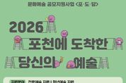 케이부동산뉴스 김교민 기자 | 포천문화관광재단은 2026년 문화예술 공모지원사업 ‘포천에 도착한 당신의 예술’(이하 ‘포도당’)에 참여할 예술인과 예술단체를 대상으로 공모를 진행한다. ‘포도당’ 사업은 지역 예술인과 예술단체의 지속 가능하고 자생적인 창작 기반을 마련하고 시민의 문화예술 향유 기회를 확대하기 위해 2021년부터 지속적으로 추진해 온 재단의 대표적인 문화예술 지원사업으로, 2026년에는 전문예술, 청년예술, 생활문화, 문화예술 교육프로그램 운영 등 총 4개 분야를 대상으로 운영된다. 올해 지원사업 총예산은 2억 2,300만 원으로 전년 대비 3,300만 원이 증액됐다. 재단은 이를 바탕으로 지역 예술인의 안정적인 창작 활동을 뒷받침하고 시민과 포천을 찾는 방문객에게 다양한 문화예술 콘텐츠를 제공할 방침이다. 이에 앞서 재단은 사업에 대한 이해도를 높이기 위해 지난 2월 6일 포천반월아트홀 소극장에서 ‘2026년 문화예술 통합지원 설명회’를 개최해 사업 추진 방향과 지원 분야, 운영 지침 전반을 안내했다.