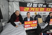케이부동산뉴스 김교민 기자 | 경기도의 농정·복지예산 대규모 삭감과 김동연 지사 비서실장의 행정사무감사 불출석 사태에 반발하며 단식 투쟁을 이어가고 있는 백현종 경기도의회 국민의힘 대표의원(구리1)을 격려하기 위해, 4일 김민수 국민의힘 최고위원이 도의회 1층 로비 단식장을 전격 방문했다. 백 대표의 단식은 이날로 10일 차를 맞았다. 김민수 최고위원은 백 대표의 손을 잡은 뒤 직접 포옹하며 “지방에서 중앙보다 더 강하게, 더 당당하게 싸워줘 정말 고맙다”며 진심 어린 위로를 전했다. 이어 “대표님이 절대 혼자가 아니다. 당 지도부도 상황을 엄중히 보고 있으며 함께할 것”이라고 강조했다. 백 대표는 체력이 많이 소진된 상태에서도 김 최고위원을 향해 미소로 화답하며 “방문 자체가 큰 힘이 된다”며 “도민의 복지와 농정을 되찾기 위한 투쟁을 반드시 완수하겠다. 정신만큼은 누구보다 강하다”고 말했다. 김 최고위원은 또 “경기도정의 비정상적 운영을 바로잡기 위한 의회 차원의 투쟁은 반드시 의미 있게 이어져야 한다”며 “도민의 삶에 직결되는 예산 문제를 두고 정치적 책임을 외면해선 안 된다”고 지적했다. 백 대표는 지난달 말부터 도의회 로비에서 무기한 단식 농성에 돌