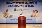 케이부동산뉴스 김교민 기자 | 파주시는 지난 14일 파주시민회관 대공연장에서 ‘제29회 노인의 날 기념행사 및 세계보건기구(WHO) 인증 고령친화도시 선포식’을 성황리에 개최하고, 고령사회에 대응하는 파주시 복지정책 방향과 세대 간 공감의 문화를 확산하기 위한 뜻깊은 자리를 마련했다. 이번 행사는 김경일 파주시장을 비롯해 박대성 파주시의회 의장, 경기도 및 파주시의원, 노인 관련 유관기관장 등 400여 명이 참석해 시민 모두가 행복한 고령친화도시를 만들어가겠다는 의지를 다졌다. 이날 행사에서는 노인복지 유공자 54명에 대한 표창 수여와 함께 고령친화도시 선포, 축하공연 등이 이어져 풍성한 볼거리를 선사했다. 김경일 파주시장은 “파주시는 세계보건기구(WHO)로부터 고령친화도시로 공식 인증받은 것을 계기로, 어르신이 존중받고 시민 모두가 행복한 도시를 만들겠다”라며 “앞으로도 노인복지 증진과 세대 통합을 위한 다양한 정책 실현을 통해 파주시민 모두가 ‘파주에 살기를 참 잘했다’라고 말할 수 있도록 최선을 다하겠다”라고 밝혔다. 향후 파주시는 관내 노인 관련 유관단체와 적극 협력하여 어르신의 목소리에 귀