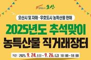 케이부동산뉴스 김교민 기자 | 오산시는 민족 최대 명절 추석을 맞아 오는 24일(수)부터 26일(금)까지 3일간 오산시청 광장에서 ‘추석맞이 자매도시 농특산물 직거래장터’를 개최한다고 밝혔다. 올해 직거래장터에는 영동군, 속초시, 순천시, 진도군, 남해군, 장수군, 남원시, 공주시, 오산시 등 총 9개 시군에서 24개 업체가 참여한다. 규모 있는 장터답게 제수용품부터 선물세트까지 명절 상차림에 필요한 다양한 특산품을 만나볼 수 있다. 영동군의 포도·곶감·와인, 속초시의 젓갈류·명태강정, 순천시의 홍차·전통장, 진도군의 김·전복·울금, 공주시의 햇밤과 장류, 남원시의 강정·추어탕, 오산시의 세마쌀·전통주·호두정과 등 전국 각지의 특산품이 한자리에 모인다. 시중보다 저렴하게 판매돼 시민들의 장바구니 부담을 덜어줄 전망이다. 시는 이번 장터를 통해 자매·우호도시 농가에는 안정적인 판로를 제공하고, 시민들에게는 믿을 수 있는 농특산물을 만날 수 있는 기회를 마련해 도농 상생의 의미를 더할 계획이다. 이권재 오산시장은 “추석 장터를 통해 시민들께서 질 좋은 농특산물을 합리적인 가격에 구입하시고, 자매·우호도시 농가에도 힘이 되길 바란다”며 “앞으로도 상생과 교류를 통