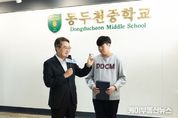 케이부동산뉴스 김교민 기자 | 김동연 경기도지사가 16일 동두천중학교를 찾아 노점 할머니께 비상금을 건넨 선행으로 화제가 된 옥현일 군에게 표창을 수여했다. 김 지사는 학교 현관에서 학생회와 함께 ‘함께라서 더 빛나는 우리’ 생명존중 캠페인에 동참하고, 이어 1층 로비에서 옥현일 군에게 표창장을 전달했다. 옥현일 군은 지난 7월 폭염 속에서 노점상 할머니에게 비상금 3만 원을 건네고 콩 한 봉지를 받은 사연이 알려지며 주목받았다. SNS에 게시된 영상은 인근 공방 운영자가 촬영한 것으로, 현일 군이 남모르게 베푼 선행이 담겨 3일 만에 206만 조회수, ‘좋아요’ 약 7만, 댓글 2,500개 이상을 기록했다. 당시 현일 군은 “더운 날씨에 할머니가 물건을 빨리 팔고 쉬셨으면 좋겠다는 마음이었다”고 말해 많은 시민에게 감동을 줬다. 김동연 지사는 이날 인사말을 통해 “옥현일 군이 도운 할머니가 우리의 어머니, 할머니”라며 “수많은 옥현일 군이 동두천중에 있다고 본다. 그것이 사람 사는 세상”이라고 말했다. 이어 “여러분이 그런 따뜻한 마음을 갖길 바란다. 당장은 남을 위한 배려 같지만 길