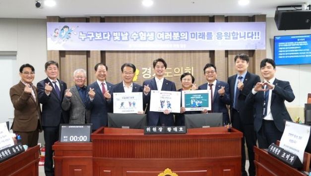케이부동산뉴스 김교민 기자 | 경기도의회 교육기획위원회(위원장 안광률)는 11월 12일, 2026학년도 대학수학능력시험을 하루 앞두고 수험생들을 노고를 격려하고 희망의 메시지를 전하기 위해 응원 시간을 가졌다. 이번 응원은 2025년도 행정사무감사 일정 중 경기도교육복지종합센터에서 진행됐으며, 위원들은 "2026학년도 수능대박을 기원합니다" 문구가 적힌 카드섹션을 들고 따뜻한 격려의 마음을 전했다. 안광률 위원장은 “수능은 단 하루지만, 그날을 위해 흘린 땀방울과 노력의 시간은 누구보다 길고 깊었다”며, 이어 “경기도의회는 그 노력의 결실 위에서 모든 수험생이 환하게 웃을 수 있기를 바라며, 여러분의 내일을 진심으로 응원한다”고 덧붙였다. 또한 안 위원장은 “경기도교육청은 유관기관과 긴밀히 협력해 만일의 상황 속에도 신속히 대응할 수 있는 체계를 갖춰달라”며, “모든 수험생이 공정하고 안정된 환경에서 시험을 치를 수 있도록 만전을 기해달라”고 당부했다. 이날 교육기획위원회 위원들은 한목소리로 “수험생 여러분, 그동안 정말 수고 많았습니다. 끝까지 포기하지 말고, 자신을 믿고 나아가시길 바랍니다”라며 따뜻한 응원을 보냈다. 경기도의회 교육기획위원회는 앞으로도