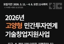 • 고양산업진흥원, 2026년 고양형 민간투자연계 기술창업지원사업(TIPS) 창업기업 모집