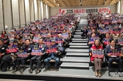 케이부동산뉴스 김교민 기자 | 국민의힘 수원시정 당원협의회(위원장 이수정)가 연말을 맞아 당원 결속과 정국 인식 공유를 위한 송년 당원 연수를 열었다. 이번 연수는 단순한 연말 행사를 넘어, 현 정국을 바라보는 보수 진영의 위기의식과 향후 대응 전략을 공유하는 자리로 꾸려졌다. 국민의힘 수원시정 당원협의회는 12월 15일 오후, 수원컨벤션센터 이벤트홀에서 당원 연수 및 송년 행사를 개최하고, 내년 지방선거와 이후 정치 일정에 대비한 조직 결속에 나섰다. 이날 행사에는 김선교 국회의원(국민의힘 경기도당위원장·여주시‧양평군)을 비롯해 이수정 수원시정 당협위원장, 박재순 수원시무 당협위원장, 이오수·이호동 경기도의원, 박현수 수원특례시의회 국민의힘 대표의원과 최원용 수원특례시의회 의회운영위원장, 국미순·김소진·권기호·오혜숙·유준숙·이재선·이재형·홍종철 수원특례시의원(가나다 순), 김용서 전 수원시장, 청년 당원 등 400여 명이 넘는 인파가 몰리며 행사장은 좌석이 부족할 정도로 열기를 띠었다. 행사는 국민의례에 이어 ▶장동혁 국민의힘 대표 영상 축사 ▶김선교 국민의힘 경기도당위원장 축사 ▶이수정 수원시정 당협위원장의 개회사 및 개회 선언 ▶수원시정 당협 주요 당직