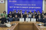 케이부동산뉴스 김교민 기자 | 민주평화통일자문회의 포천시협의회는 지난 2월 27일 포천시청 시정회의실에서 ‘2026년 1분기 정기회의 및 평화통일 협력 업무협약 체결식’을 개최했다. 이번 행사는 조용춘 협의회장을 비롯한 자문위원들과 업무협약 체결 기관 관계자, (사)공정평화통일국민연대 포천시지회 및 기후위기 포천시민행동 관계자 등이 참석했다. 1부 정기회의에서는 지역 내 통일 기반 조성을 위한 정책 건의와 의견 수렴이 이루어졌으며, 2026년 상반기 주요 사업에 대해 논의했다. 2부 행사에서는 지역 시민단체와 업무협약을 체결했다. 이번 협약을 통해 각 기관은 평화통일을 위한 협력 체계를 공고히 구축하기로 뜻을 모았다. 또한, 이날 행사에서는 평화통일 기반 구축에 기여한 공로로 임지은 자문위원이 경기도지사 표창을 전수받는 영예를 안았다. 조용춘 협의회장은 개회사를 통해 “이번 정기회의는 급변하는 정세 속에서 한반도 평화 공존을 위한 실천적 방안을 모색하는 뜻깊은 자리”라며, “지역 시민단체와 긴밀한 협력을 통해 포천시가 평화통일의 마중물 역할을 수행할 수 있도록 자문위원들의 지혜를 모아달라”고 당부했
