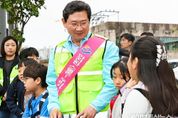 케이부동산뉴스 김교민 기자 | 이상일 용인특례시장은 14일 아침 처인구 고림로에 위치한 고진초등학교 정문 횡단보도에서 어린이들의 안전한 통학환경 조성을 위한 교통지도 봉사활동에 참여하고 학교 주변 통학로를 점검했다. 이상일 시장은 서경란 고진초 교장, 녹색어머니회·학부모회·학생 등 60여명과 함께 등굣길 어린이들이 안전하게 길을 건널 수 있도록 돕고 운전자들에게 ‘어린이보호구역 내 서행’을 당부하는 교통안전 캠페인을 펼쳤다. 이 시장은 통학로 현장을 둘러보며 ▲고림고 유리방음벽 모서리 보호대 설치 ▲고림고~힐스테이트용인고진역 구간 횡단보도 너비 확대 ▲해당 구간 도로의 물고임 등 도로시설물 일제정비 ▲통학로 낙엽제거(보행자 미끄러짐 방지) 등의 추가 건의사항을 꼼꼼히 챙겼다. 이상일 시장은 녹색어머니회와 학부모회 회원들에게 “아이들의 등굣길을 지켜주셔서 감사 드린다”며 “학생들이 마음 놓고 통학할 수 있는 안전한 도시 환경을 만드는 것이 무엇보다 중요한 만큼 시에서도 현장을 잘 살펴 필요한 조치를 신속히 진행하겠다”고 말했다. 이 시장은 10월과 11월에도 용인신촌초, 백현초, 구갈초, 신월초, 함박초, 교동초, 매봉초 등에서 교통지도 봉사와 교통안전 캠페인