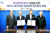 케이부동산뉴스 김교민 기자 | 파주시가 율곡 이이 선생의 학문과 철학을 체계적으로 계승하기 위해 추진 중인 ‘율곡문화진흥원’설립을 위해 지난 6일 율곡 선생의 후손인 덕수 이씨 종중과 업무협약을 체결했다. 파주시장 접견실에서 치러진 이날 협약식 현장에는 김경일 파주시장을 비롯한 파주시 관계자들과 덕수 이씨 대종회, 덕수 이씨 찬성공파 종회를 대표하는 인사와 율곡 선생의 종손이 참석해 율곡문화진흥원 설립 추진을 위한 상호 간 협력을 다짐했다. 협약의 주요 내용으로는 율곡문화진흥원 건립부지 확보 상호협조, 율곡문화진흥원 설립 기본계획 및 추진방향에 대한 협력, 율곡이이 선생 관련 종중 보유 역사·문화자료 제공, 사업 추진에 필요한 협력체계 구축 등이다. 김경일 파주시장은 “이번 협약은 율곡 선생의 정신을 현대적으로 계승하고, 파주시를 대표하는 역사·문화 자산을 체계적으로 발전시키는 중요한 출발점”이라고 강조하며 “율곡문화진흥원이 학술과 교육, 문화가 융합된 거점시설로 자리매김할 수 있도록 율곡 종중과의 협력에 최선을 다하겠다”라고 말했다. 율곡 종중 관계자 역시 “율곡 선생의 사상과 업적이 올바르게 계