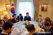 케이부동산뉴스 김교민 기자 | 유엔총회 참석을 계기로 방미 중인 이재명 대통령이 22일(현지시간) 첫 번째 일정으로 세계경제포럼(WEF) 의장인 블랙록의 래리 핑크 회장, GIP의 아데바요 오군레시 회장, 김용 전 세계은행 총재와 만났다. 이번 만남에선 인공지능과 에너지 전환, 인구 변화라는 인류의 세 가지 대전환 과제를 중심으로 논의가 이뤄졌으며, 동시에 한국과 글로벌 투자사 간 전략적 협력을 위한 공감대를 확인했다. 래리 핑크 회장은 AI와 탈탄소 전환은 반드시 함께 진행되는 것이 중요하고, 이는 전 세계가 함께 가야 할 문제라고 강조하면서 한국이 "아시아의 AI 수도(AI Capital in Asia)"가 될 수 있도록 글로벌 자본을 연계하여 적극 협력하겠다는 의지를 밝혔다. 이재명 대통령은 한국의 아시아태평양 AI 수도 실현을 위해 협력할 수 있게 되어 환영하며, 긴밀하고 지속적인 논의를 통해 이번 협력 관계를 실질적인 협력 성과로 이어지게끔 하자고 강조했다. 또한 래리 핑크 회장을 직접 한국에 초대하기도 했다. 래리 핑크 회장 일행은 이재명 대통령의 리더십으로 취임 이후에 대한민국 증