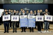 케이부동산뉴스 김교민 기자 | 화성특례시와 전국공무원노동조합 화성시지부가 3일 시청 대회의실에서 ‘2025년 하반기 공무원 노사협의회’를 개최했다. 이날 협의회에는 정명근 화성특례시장과 최태성 전국공무원노동조합 화성시지부장을 비롯한 시 집행부, 노조 간부 등 18명이 자리해, 신뢰와 존중을 바탕으로 한 건강한 조직문화 조성을 위해 협력하기로 했다. 협의회는 ▲베스트 간부공무원에 대한 시상 ▲직장 내 괴롭힘 설문조사 결과보고 ▲노사협력 활동 제안 ▲부서별 노사협의 안건 논의 순으로 진행됐다. 특히, 노사 양측은 직장 내 괴롭힘 실태와 조직문화 개선 방안을 중심으로 진솔한 의견을 나누며, 상호 존중과 소통이 살아 있는 공직문화 확립을 위한 다양한 방안을 모색했다. 또한, ‘화성특례시 모두의 약속’ 퍼포먼스를 통해 청렴과 공정, 평등의 가치를 함께 되새기며 건강한 조직문화 정착을 위한 노사 간 의지를 다졌다. 정명근 화성특례시장은 “건강한 조직문화는 노사 모두가 함께 만들어가는 가치”라며 “시 또한 열린 자세로 소통하며 시와 노동조합이 서로 신뢰를 더욱 굳건히 해 함께 성장하는 공직사회를 만