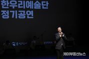 케이부동산뉴스 김교민 기자 | 용인특례시는 5일 오후 수지구 용인평생학습관 큰어울마당에서 ‘한우리예술단 정기공연’이 열렸다고 6일 밝혔다. 용인특례시가 후원하고 용인민예총이 주최·주관한 이날 행사는 우리 고유의 가락과 춤을 한자리에서 만날 수 있는 전통 공연으로 꾸며졌고, 이상일 시장은 1시간 40분간 진행된 공연을 끝까지 지켜본 뒤 공연단을 격려했다. 공연은 농악, 민요, 가야금, 검무 등으로 우리 민족 고유의 소리와 정서, 삶의 이야기를 그려내 큰 박수갈채를 받았다. 할미성 농악 보존회는 꽹과리, 장구, 북, 징, 태평소 등의 악기를 활용해 역동적인 농악 판굿을 선보였다. 용인 아리랑 보존회는 청춘가, 태평가, 창부타령 등 흥겨운 경기민요를 열창하며 분위기를 이끌었다. 이어 검무가 남지연씨의 검무공연이 펼져졌다. 앙상블 더 가야금은 대중에게 친숙한 고향의 봄, 꽃타령, 까투리타령 등을 가야금 병창으로 들려주며 국악의 매력을 선사했다. 한우리예술단은 화려한 가락이 돋보이는 설장구로 타악의 진수를 보여줬다. 이상일 시장은 축사에서 “올해로 32회를 맞이한 한우리예술단 정기공연은 전통문화예술의 정서를 전승하고 발전시켜왔으며, 오랜 기간 시민들과 소통하며 국악,