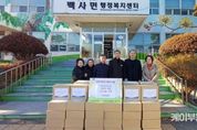 케이부동산뉴스 김교민 기자 | 반도유보라어린이집은 연말을 맞아 기부금 92만 6천 원과 사랑의 트리박스를 양평군종합사회복지관에 전달했다. 이번 기부금은 어린이집에서 이웃 돕기 성금 마련을 위해 진행한 밑반찬 판매 행사 수익금으로 조성됐으며, 사랑의 트리박스는 지역 내 아동과 독거 어르신에게 따뜻한 나눔을 전하고자 설치됐다. 트리박스에는 라면, 김, 햇반 등 생활에 필요한 다양한 식품이 담겼다. 전달식에는 어린이집 교직원과 원아, 학부모가 함께 복지관을 방문해 지역사회 이웃들에게 따뜻한 마음을 전했다. 반도유보라어린이집은 매년 김장나눔, 기부금 전달 등 지역사회 나눔 활동에 꾸준히 참여하며 지역사회와 함께 성장하는 어린이집으로 자리매김하고 있다. 김현지 원장은 “아이들이 나눔의 가치를 직접 경험할 수 있는 의미 있는 시간이었다”며 “앞으로도 아이들과 함께 나눔을 실천하는 어린이집이 되겠다”고 전했다. 강동연 관장은 “따뜻한 마음을 전해주신 어린이집과 학부모, 아이들에게 감사드린다”며 “아이들의 정성이 담긴 기부금과 사랑의 트리박스는 도움이 필요한 지역사회 소외계층을 위해 소중히 사용하겠다”고 말했다.