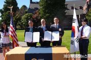 케이부동산뉴스 김교민 기자 | 평택시의회는 22일, 미국 애니 라이트 스쿨에서 열린 협약식에 참석해 양해각서(MOU)를 체결하며, 평택국제학교 설립을 공식화했다. 이날 협약식에는 강정구 평택시의회 의장, 정장선 평택시장, 애니 라이트 스쿨 데이비드 오버튼 이사장, 제이크 과드놀라 교장을 비롯한 학교 관계자, 학부모, 학생, 지역 인사들이 함께했다. 협약식에 이어 열린 리셉션에는 메를린 스트릭랜드 연방 하원의원, 데니 헥 워싱턴주 부주지사, 라이언 멜로 피어스 카운티 행정수반 등 지역 주요 인사들이 참석해 지역 협력을 논의했다. 강정구 의장은 “오늘 양해각서(MOU) 체결을 계기로 평택국제학교 설립에 필요한 실무적 협의를 완료하고 교육환경 선진사례를 직접 확인함으로써 평택시의 글로벌 교육환경이 조속히 조성되기를 바란다”라고 하며 “시민들에게 실질적인 혜택이 돌아가도록 꼼꼼히 점검하고 정책에 반영하겠다”고 밝혔다.