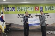 케이부동산뉴스 김교민 기자 | 수원시 권선구 세류3동 방위협의회는 지난 12일, 세류3동행정복지센터를 방문해 불우이웃 돕기 후원금 50만 원을 기탁했다. 이번 후원금은 지역 내 취약계층 및 복지사각지대 가구 지원을 위해 사용될 예정이며, 세류3동행정복지센터는 대상자 발굴 및 맞춤형 복지서비스 연계 등을 통해 실질적인 도움이 될 수 있도록 집행할 계획이다. 방위협의회 회장은 “우리 주변에는 작은 도움에도 다시 힘을 낼 수 있는 이웃들이 있다”며 “이번 후원이 따뜻한 위로가 되길 바라며, 앞으로도 지역과 함께하는 나눔 활동을 꾸준히 이어가겠다”라고 말했다. 이진영 세류3동장은 “어려운 시기에 이웃을 먼저 생각해 주신 방위협의회에 깊이 감사드린다”며 “기탁해 주신 성금은 취약계층 지원을 위해 투명하고 세심하게 집행하겠다”라고 전했다. 한편 세류3동행정복지센터는 지역 내 복지자원과 연계한 지원체계를 바탕으로, 복지사각지대 해소를 위한 상담·발굴 활동을 지속 추진하고 있으며, 주민이 체감할 수 있는 촘촘한 복지안전망 구축에 힘쓰고 있다.
