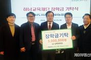 케이부동산뉴스 김교민 기자 | NH농협은행 하남시지부는 하남시 지역인재 양성을 위해 하남교육재단에 장학금 3백만원을 기탁했다. NH농협은행 하남시지부는 하남시 인재 육성을 위해 12년동안 꾸준히 장학금을 지원하고 있으며, 이번 기탁금은 하남시 학생들의 학업지원에 활용할 예정이다. 이석표 지부장은“지역 학생들의 성장과 미래를 응원하는 마음으로 장학금을 전달했다”며 “앞으로도 지역인재 양성을 위한 다양한 지원을 이어가겠다”고 말했다. 이현재 시장(하남교육재단 이사장)은 “NH농협은행 하남시지부의 꾸준한 관심과 후원에 감사드린다”며 “기탁금이 학생들의 꿈을 키우는 데 도움이 되도록 소중히 사용하겠다”고 밝혔다. 하남교육재단은 관내 초·중·고등학생들을 대상으로 장학사업을 비롯해 캠퍼스 투어, 기업체험, 진로·진학 프로그램, 학부모 교육 등 다양한 교육 지원 사업을 운영하고 있으며, 매년 약 3만여명의 학생들이 교육서비스를 제공받고 있다.