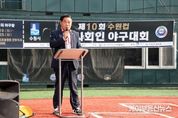케이부동산뉴스 김교민 기자 | 수원특례시의회는 10월 19일 황구지천야구장에서 열린 ‘제10회 수원컵 전국 사회인 야구대회 개회식’에 참석해 선수들을 격려했다. 이번 대회는 경기일보가 주최하고 수원시야구소프트볼협회가 주관했으며, 전국 사회인 44개 팀이 참가해 뜨거운 열정 속에 경기를 펼쳤다. 이날 행사에는 이재식 의장, 김정렬 부의장을 비롯한 오세철 예산결산특별위원장, 김동은 의원이 함께해 선수단을 응원하며, 전국 각지에서 모인 야구 동호인들과 교류의 시간을 가졌다. 이재식 의장은 축사에서 “직장과 가정을 오가며 바쁜 일상 속에서도 야구에 대한 열정으로 최선을 다하는 선수 여러분께 진심 어린 박수를 보낸다”며 “이번 대회가 지역과 세대를 넘어 우정을 나누는 축제가 되길 바란다.”고 말했다.