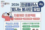 케이부동산뉴스 김교민 기자 | 광명시 인생플러스센터가 ‘2026년 인생플러스 빛나는 봉사단’ 제3기 봉사자 40명을 2월 23일부터 3월 11일까지 모집한다. ‘인생플러스 빛나는 봉사단’은 40~64세 광명시 중장년이 지닌 지식과 역량을 평생학습 자원으로 확장해 지역공동체에 필요한 변화를 함께 만들어가는 ‘재능활용 학습실천’ 자원봉사 활동이다. 지난 1‧2기 활동에는 총 50명의 봉사자가 참여해 ▲아동 학습보조 및 책놀이 ▲1:1 디지털 코칭 ‘신중년 디지털 아지트’ ▲어르신 아로마 향기테라피 ▲중장년 드론 조종 체험 등 다양한 활동을 펼쳤다. 이들은 총 413회, 누적 1천358시간에 걸친 봉사활동으로 지역사회에 활력을 불어넣었다는 평가를 받았다. 이번 3기 모집 분야는 크게 현장지원형(10명)과 프로젝트형(30명)으로 나뉜다. 현장지원형은 센터 프로그램 운영과 행사 안내를 돕는 ‘인생플러스 서포터즈’와 교육강사 보조 및 모니터링 일지를 작성하는 ‘학습 모니터링’으로 운영한다. 프로젝트형은 ‘신중년 디지털 아지트(1:1 코칭)’, ‘초등학생 책 낭독놀이’를 비롯해 봉사자가 직접 프로그