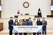 케이부동산뉴스 김교민 기자 | 용인특례시의회는 30일 의장실에서 원주시의회 원주특례시추진특별위원회의 방문을 받고 특례시 추진 및 운영 사례를 공유하는 시간을 가졌다고 밝혔다. 이번 방문은 특례시 추진을 준비 중인 원주시의회가 용인특례시의회의 제도 운영 경험과 의회 조직·권한 구조를 벤치마킹하기 위해 마련됐다. 용인특례시의회에서는 유진선 의장을 비롯해 이윤미 의회운영위원장, 김희영·이진규·기주옥 의원이 참석했으며, 용인특례시 자치분권과 관계자들도 함께했다. 원주시의회 원주특례시추진특별위원회에서는 손준기 위원장과 최미옥·문정환 의원 등 관계자들이 참석했다. 이날 일정은 상호 소개를 시작으로 ▲특례시 운영 현황 및 제도적 기반에 대한 설명 ▲특례시 추진 과정과 의회 역할 공유 ▲의회 시설 견학 순으로 진행됐다. 특히, 참석자들은 ‘지방자치법’과 ‘지방자치분권 및 지역균형발전에 관한 특별법’ 등 특례시 관련 법령 체계, 인구 100만 이상 대도시의 행·재정 수요 증가에 따른 특례시 도입 배경과 필요성, ‘특례시의회 사무기구 구성과 정책지원 전문인력 운영 사례 등에 대해 심도 있는 의견을 나눴다.