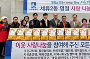 케이부동산뉴스 김교민 기자 | 지난 11일, 수원시 권선구 세류2동은 설 명절을 맞이하여 사랑 나눔 전달식을 개최했다. 이날 마련된 후원 물품은 취약계층 약 379 가구에 직접 전달될 예정으로 지역사회에 사랑이 전해지는 명절이 될 것으로 기대된다. 이번 전달식에는 세류2동 주민자치회, 통장협의회, 새마을부녀회, 새마을문고, 바르게살기위원회, 자유총연맹, 체육진흥회, 방위협의회, 지역사회보장협의체 등 9개 단체의 단체장과 ㈜대일실업, ㈜광신이 참여했다. 이와 함께 MG세화새마을금고, ㈜에코월드, 영광광고기획 등 지역 내 여러 기관과 개인 후원자의 사랑 나눔도 더해져 행사에 의미를 더했다. 변영호 세류2동장은 “어려운 시기에 지역사회 관심으로 사랑 나눔에 참여해 주신 단체(기관)에 감사드리며, 앞으로도 유관 기관과 적극 협력으로 행복과 웃음이 피어나는 정겨운 세류2동을 만들기 위해 최선을 다하겠다”라고 말했다.