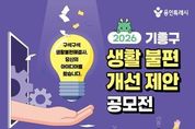 케이부동산뉴스 김교민 기자 | 용인특례시 기흥구는 오는 6일부터 5월 4일까지 ‘2026 기흥구 생활불편개선 제안 공모전’을 개최한다. 이번 공모전은 일상에서 시민이 직접 체감하는 불편사항을 발굴하고, 이를 개선할 수 있는 다양한 방안을 모색하고자 마련됐다. 주제는 일상생활에서 체감하는 생활 불편 개선 아이디어다. 시설·환경 등 각종 생활 불편 사항이나 비효율적인 행정이나 규제 등 다양한 분야의 의견을 받는다. 생활 불편에 관심 있는 누구나 참여할 수 있다. 시 누리집 ‘용인소식’의 ‘고시공고’ 또는 기흥구 누리집 ‘참여광장’의 ‘기흥소식’에서 서식을 내려받아 작성하면 된다. 작성한 제안은 방문‧우편(기흥구 관곡로 95 기흥구청 별관 2층 자치행정과 기획감사팀)으로 내면 된다. 전자우편으로도 제출할 수 있다. 부서 검토와 제안공모심사위원회 검토를 거쳐 최종 선정된 제안은 시상금(최대 100만 원)이 지급된다. 또 관련 부서 검토 등을 거쳐 행정에 반영하거나 실효성 있는 정책으로 이어질 수 있도록 추진할 방침이다. 자세한 사항은 시 또는 구 누리집에서