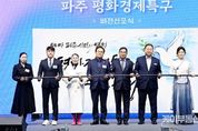 케이부동산뉴스 김교민 기자 | 파주시가 평화경제특구 유치를 향한 염원과 의지를 대내외에 알리는 '평화경제특구 비전 선포식'을 지난 7일 개최했다. 파주시민회관 대공연장에서 개최된 이번 행사는 김경일 파주시장을 비롯해 주요 내빈과 평화경제특구 유치 시민추진단, 시민 등 200여 명이 참석한 가운데 진행됐다. 행사는 파주시립예술단의 식전 공연을 시작으로, 개회식, 평화경제특구 비전 발표, 시민추진단 2기 위촉식 순으로 이어졌다. 김경일 파주시장은 비전 발표를 통해 평화를 기반으로 한 경제 성장과 신산업 생태계 구축을 목표로 하는 파주 평화경제특구의 추진 방향을 제시했다. 특히 이날 행사에서는 지난해 12월 구성된 ‘평화경제특구 유치 시민추진단 2기’위촉식이 함께 열려, 민관이 함께하는 평화경제특구 파주 유치 추진 체계의 본격 가동을 알렸다. 행사의 대미로는 멋글씨 예술가(캘리그라퍼) 이화선 작가가 참여한 붓글씨 시연이 진행됐으며, 김경일 파주시장과 내빈, 시민추진단 대표가 함께한 장붓 시연을 통해 ‘평화경제특구 파주’유치에 대한 강한 의지를 상징적으로 표현하며 현장의 열기를 더했다. 김경일