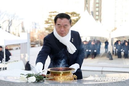 케이부동산뉴스 김교민 기자 | 의왕시가 신년을 맞이해 1일, 현충탑에서 국가를 위해 헌신한 분들의 숭고한 희생정신을 기리는 참배를 진행했다. 이날 참배에서는 안치권 부시장, 김학기 의왕시의회 의장, 이소영 국회의원, 시의원, 도의원, 보훈·안보 단체 회원 등 90여 명이 참석해 나라를 위해 헌신한 참전유공자 및 독립 유공자를 추모하는 헌화와 분향을 진행했다. 참석자들은 이날 진심을 담은 참배를 통해 선열들의 뜻을 되새기며, 시 발전과 시민 화합을 위해 힘을 모을 것을 다짐했다.