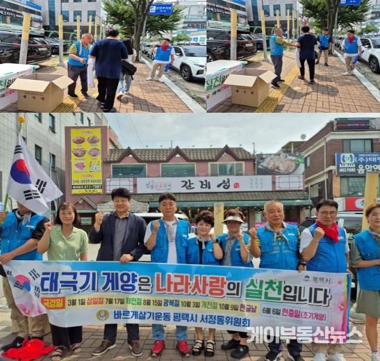 케이부동산뉴스 김교민 기자 | 평택시 바르게살기운동 서정동위원회는 지난 10일 제79주년 8․15 광복절을 맞아 송탄 관광특구로 일대에서 시민들에게 태극기 200개를 나눠주는 행사를 진행했다.