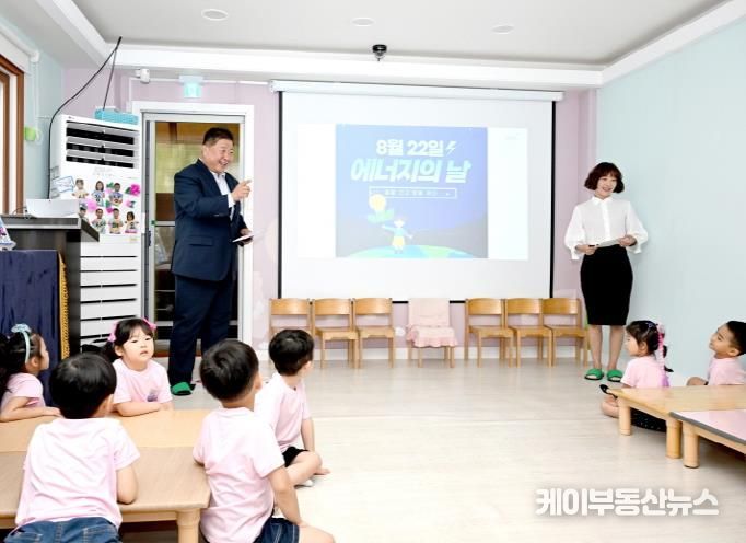 오전에는 파주시청 어린이집에서 ‘어린이 알이100(RE100) 교실’이 진행됐다. 행사에 참여한 김경일 파주시장은 어린이들에게 재생에너지의 중요성과 미래세대를 위한 알이100(RE100)의 역할 등을 설명하고 수력발전기 체험 꾸러미(키트)를 함께 제작해보며 에너지의 날의 의미를 되새기는 시간을 가졌다.