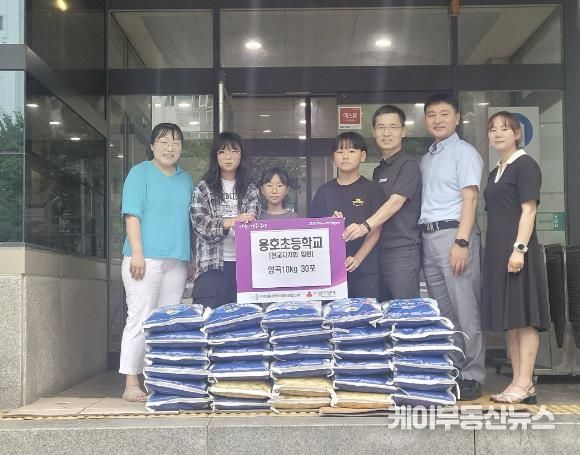 케이부동산뉴스 김교민 기자 | 군포시 군포2동에 위치한 용호초등학교 전교자치회 학생와 학부모회에서는 민족최대의 명절인 한가위를 맞이하여 관내 취약계층을 위해 10kg 쌀 30포를 군포2동을 통해 기탁했다.
