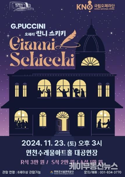 케이부동산뉴스 김교민 기자 | 연천수레울아트홀은 오는 2024년 11월 23일 토요일 오후 3시, 국내 최고의 오페라 단체인 국립오페라단이 선보이는 오페라 '잔니 스키키' 공연을 개최한다. 이번 공연은 연천군민들이 높은 수준의 문화예술을 경험할 수 있도록 국립오페라단을 초청하여 기획되었으며, 지역 주민들에게 특별한 공연의 기회를 제공하고자 한다.