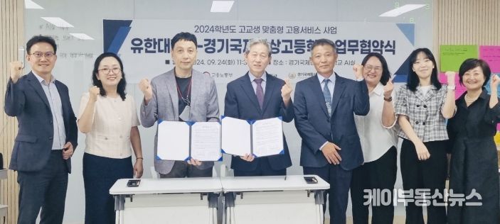 케이부동산뉴스 김교민 기자 | 유한대학교 대학일자리플러스센터는 ‘고용노동부 고교생 맞춤형 고용서비스 사업’의 성공적 운영을 위해 경기국제통상고등학교와 고교생 맞춤형 고용서비스 업무협약을 체결하고, 미래 인재 양성을 위한 상호 협력 체계를 구축했다고 밝혔다.