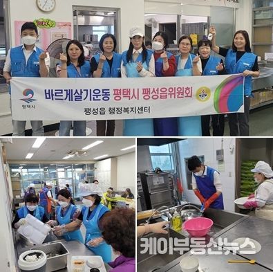 한편 바르게살기운동 팽성읍위원회는 홀몸노인 어르신 배식 봉사활동뿐만 아니라 이웃사랑 고구마 수확, 밑반찬 꾸러미 지원, 태극기 나눔 행사, 환경 정화 활동 등 나눔과 봉사활동을 실천하고 있으며, 앞으로도 이웃과 함께하는 따뜻한 사회를 만들어 나갈 것이다.