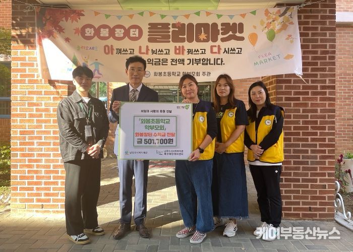 케이부동산뉴스 김교민 기자 | 남양주시 화봉초등학교 학부모회는 지난 16일 ‘화봉장터’ 플리마켓에서 모은 수익금 501,700원을 남양주시 사회복지관 북부희망케어센터에 전달했다.