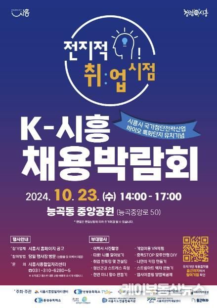 케이부동산뉴스 김교민 기자 | 시흥시가 오는 10월 23일 오후 2시부터 5시까지 ‘전지적 취업 시점, K-시흥 채용박람회’를 능곡동 중앙공원(서해선 능곡역 근처)에서 개최한다.