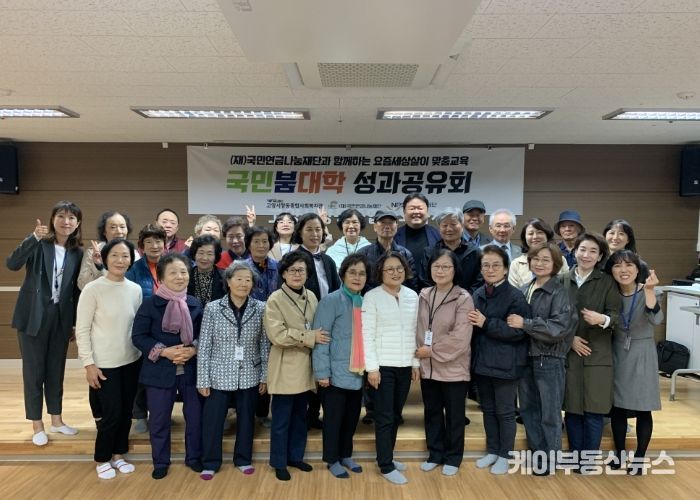케이부동산뉴스 김교민 기자 | 고양시향동종합사회복지관은 지난 22일 국민연금나눔재단 지원의 아카데미 사업인 국민붐대학의 성과공유회를 진행했다.