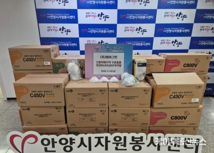 케이부동산뉴스 김교민 기자 | 안양시는 마스크 제조기업 ㈜에버그린이 영남지역 산불피해 복구와 이재민 지원을 위해 안양시자원봉사센터를 통해 방진 마스크 5천개를 기부했다고 31일 밝혔다.